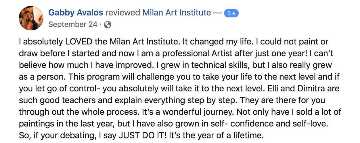 Milan Art Institute has turned a passion into a profession for hundreds of students. Both beginners and professionals come here to master skills, learn new techniques, and join an ever-expanding community of artists. Milan Art Institute is here to enlighten and educate a worldwide audience about the transformational power of the visual arts.